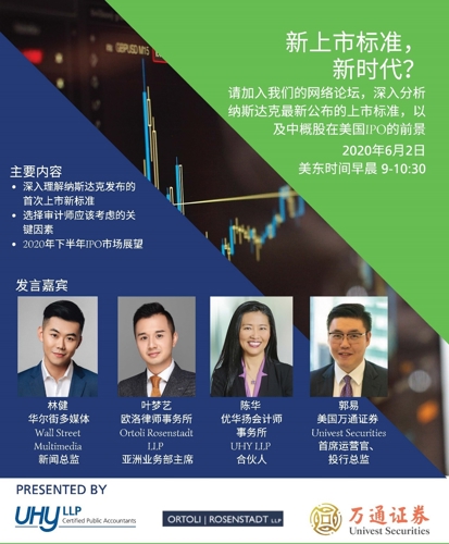 优华扬将举办”纳斯达克新上市标准及美国IPO市场展望”的网络论坛