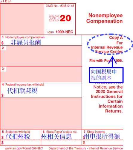 2020年美国税务局发布了新的1099表,即1099-NEC,同时对旧的1099-MISC表做了更新。此次改革的主要变化是把非雇员报酬一项从旧的1099 – MISC表的Box 7排除,而以新的表格 Form 1099- NEC进行申报。也就是说,如果付款方支付了合同工服务报酬,同时也支付了租金,以前该付款方只需要申报1099-MISC表,现在需要就支付给合同工的报酬申报1099-NEC,并就支付的租金申报1099-MISC表。